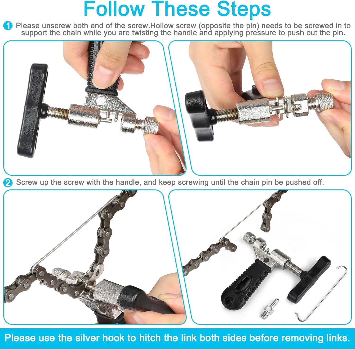 - Our 2-in-1 bike link pliers allow you to remove and attach the master link effortlessly.