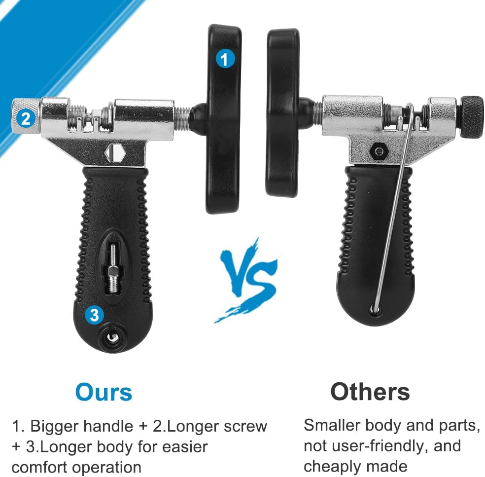 Our set includes bike chain link pliers, a chain breaker, and joiner tools, allowing you to quickly repair and maintain your bike. This makes it an essential toolset for cyclists or anyone who enjoys long bike rides, ensuring you’re always ready to repair or adjust your bike chain.
